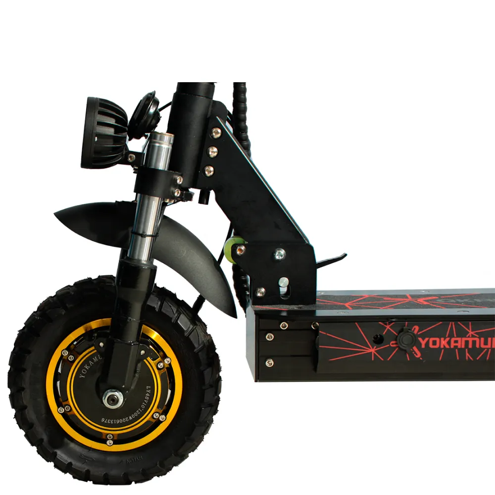 Самокат YOKAMURA RX1 на одном заряде аккумулятора преодолевает расстояние 60 км. Дисковая тормозная система на переднем и заднем колесе позволяет совершать маневры, амортизация делает движение электросамоката плавным даже на не ровной дороге. Производитель предусмотрел внешнее освещение для передвижения в темное время суток.
