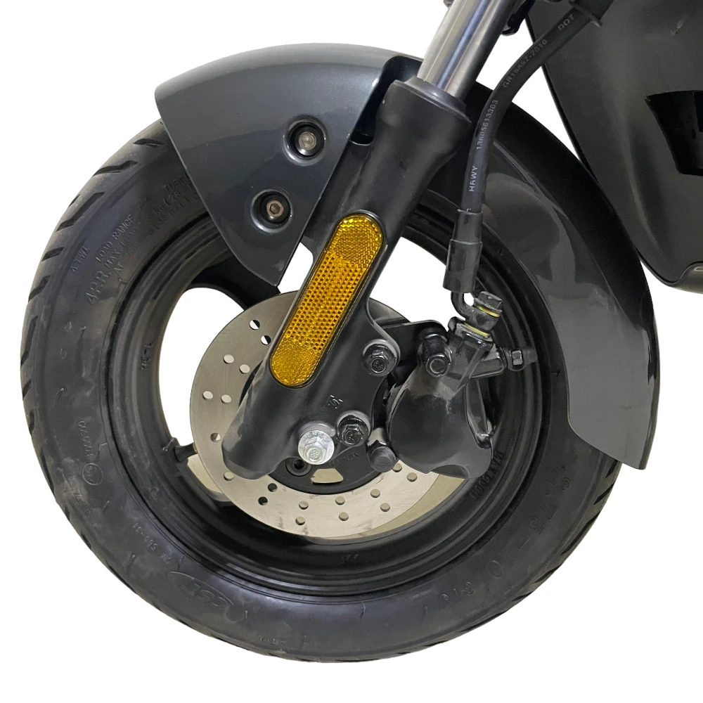 Популярность и востребованность электроскутера связана с привлекательным эстетическим дизайном, качественной начинкой и мощными техническими характеристиками. Электробайк с мощностью мотора 1000 Вт, весом 51 кг и грузоподъемностью в 150 кг способен развивать скорость до 50 км/час и преодолевать на одной подзарядке 55 км пути. Обратите внимание на комплектацию. Она максимально полная. Техника оснащена зеркалами обозрения, большой светодиодной фарой, спидометром, сигнализацией, подножкой для парковки. Практический опыт и отзывы пользователей доказывают безопасность эксплуатации и комфорт пользования электробайком.