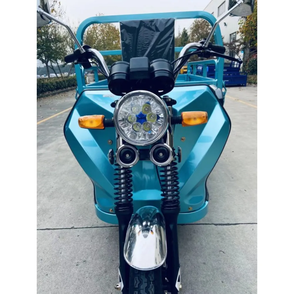 Техника изготовлена из высокопрочного материала, который в ходе эксплуатации не теряет своих характеристик. Производитель учел все пожелания и оснастил модель шасси с гидравлическими амортизаторами. Для безопасности движения у электротрицикла барабанные передние и задние тормоза. Транспорт имеет мотор мощностью 1000 Вт, что позволяет развивать скорость до 30 км/час. Количество циклов разрядки/зарядки составляет 700. Ресурса батареи хватает на 15 тыс.км. Это доступный вид транспортного средства с максимальной нагрузкой до 350 кг груза, не требует сложного обслуживания.