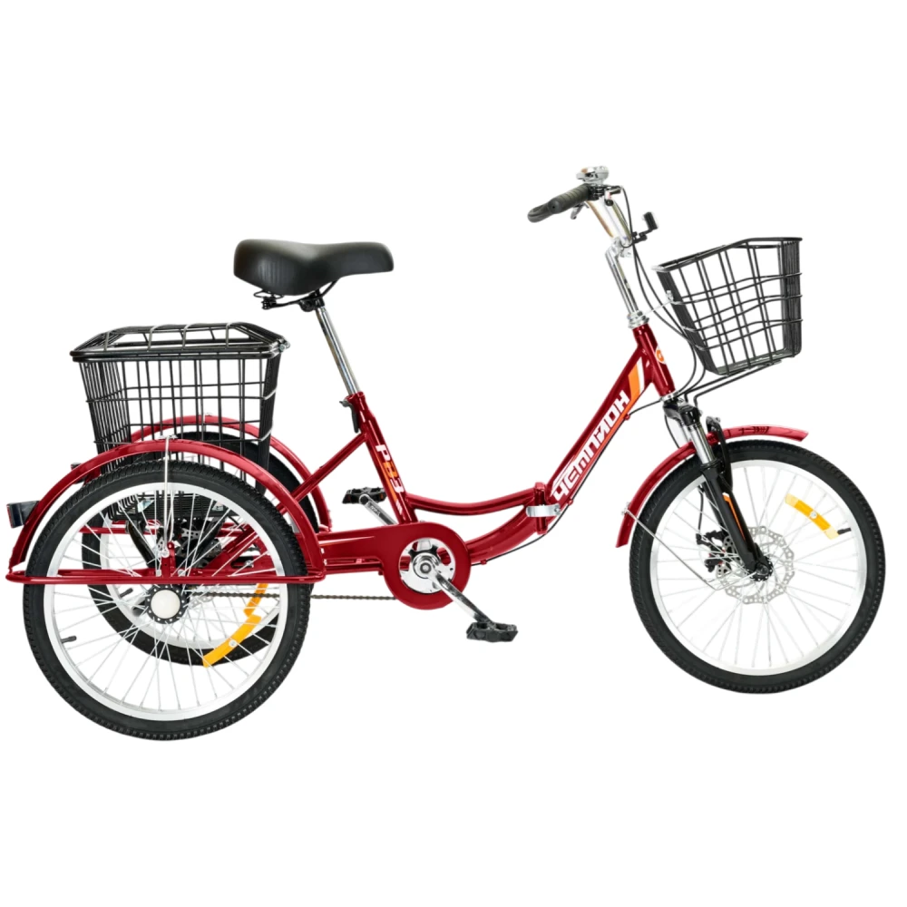 Трехколесный велосипед для взрослых РВЗ Чемпион 20" 1 скорость красный